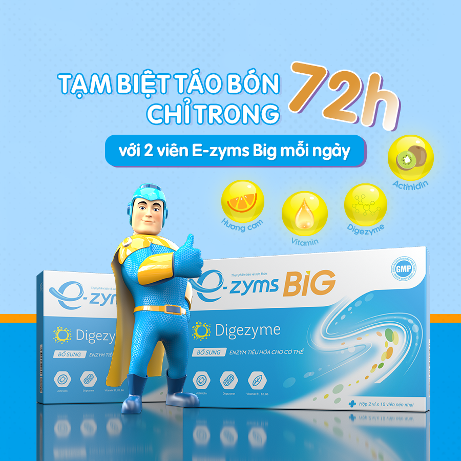Chỉ với 2 viên E-zyms BIG mỗi ngày sẽ, bạn sẽ không phải lo lắng táo bón uống gì.